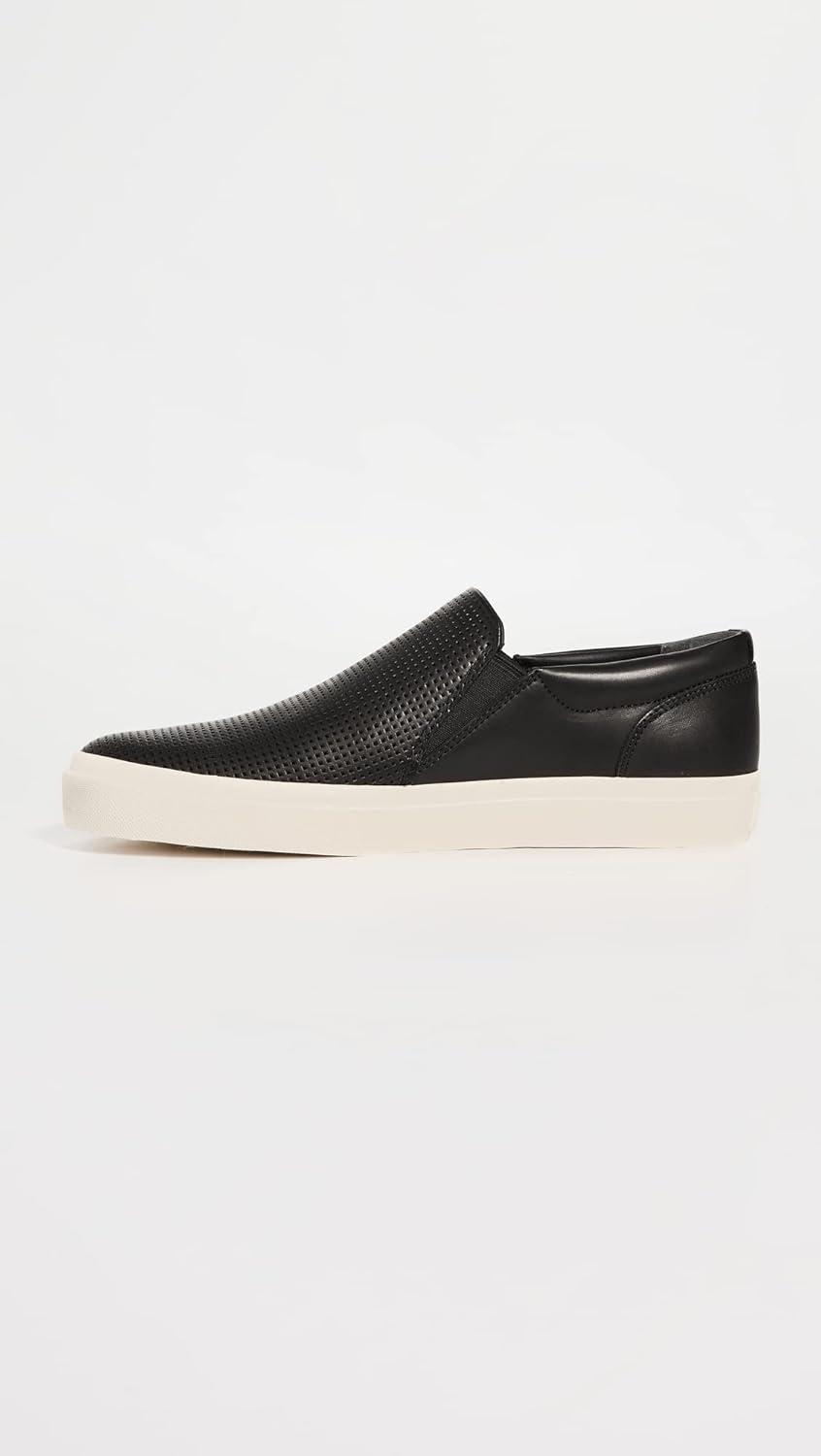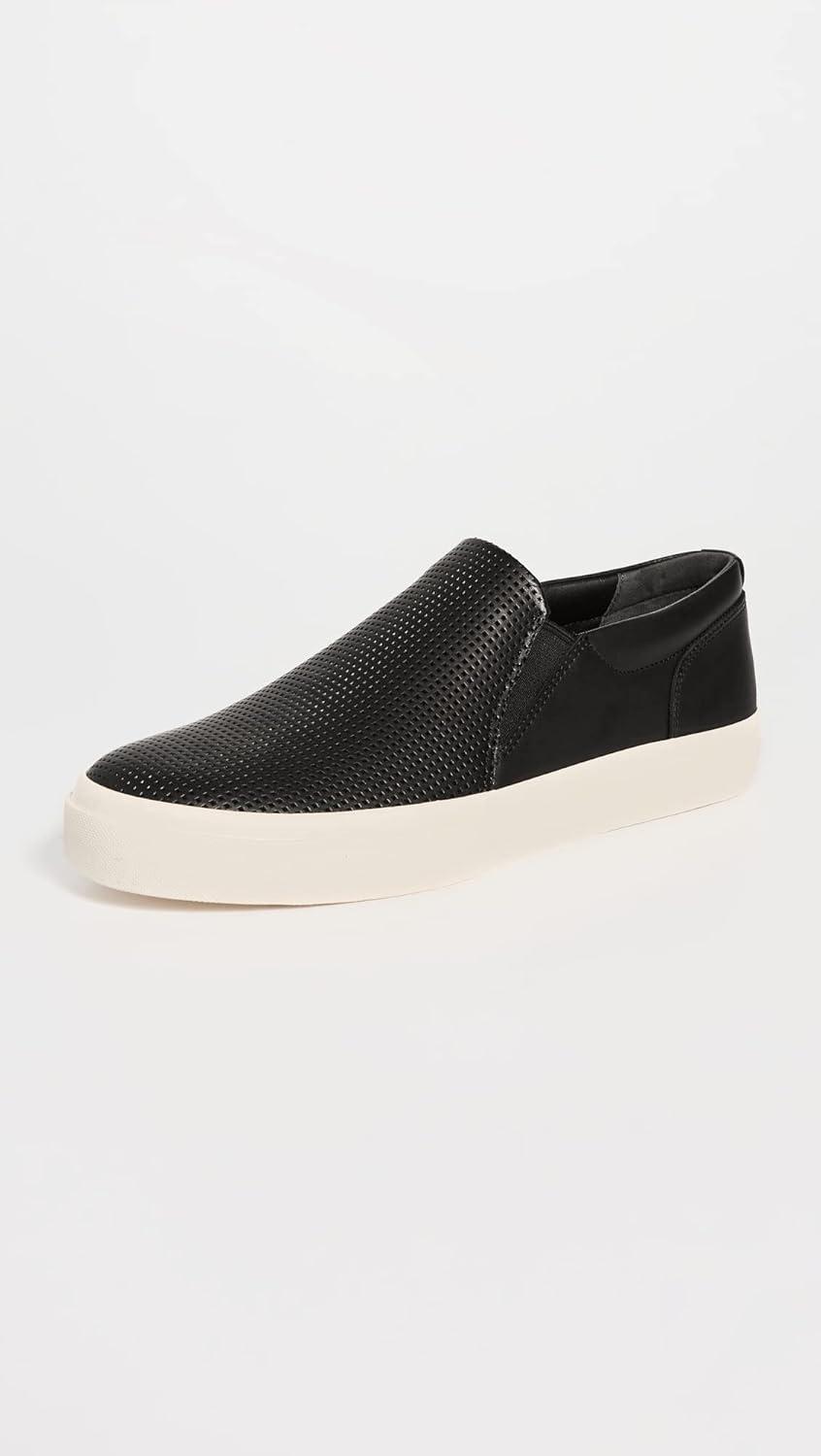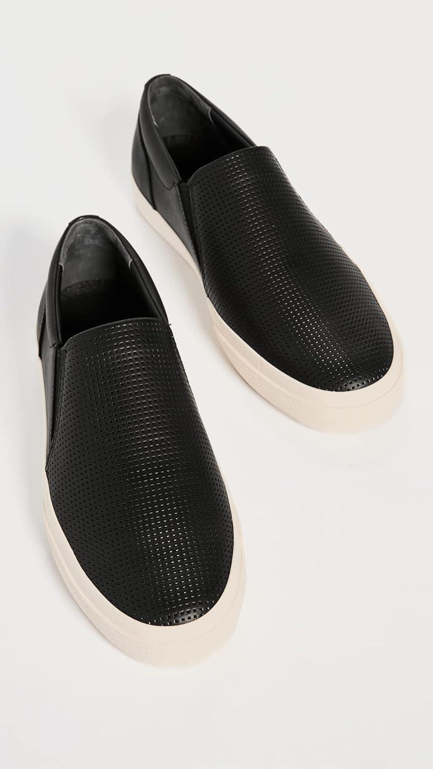 Sleek slip on sneakers for men designed with handsome perforated leather and smooth sport soles. Leather upper and lining. Slips on. Round toe. Platform rubber sole measures 1.50”. Professional clean only. Imported.