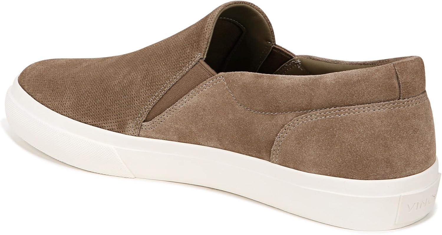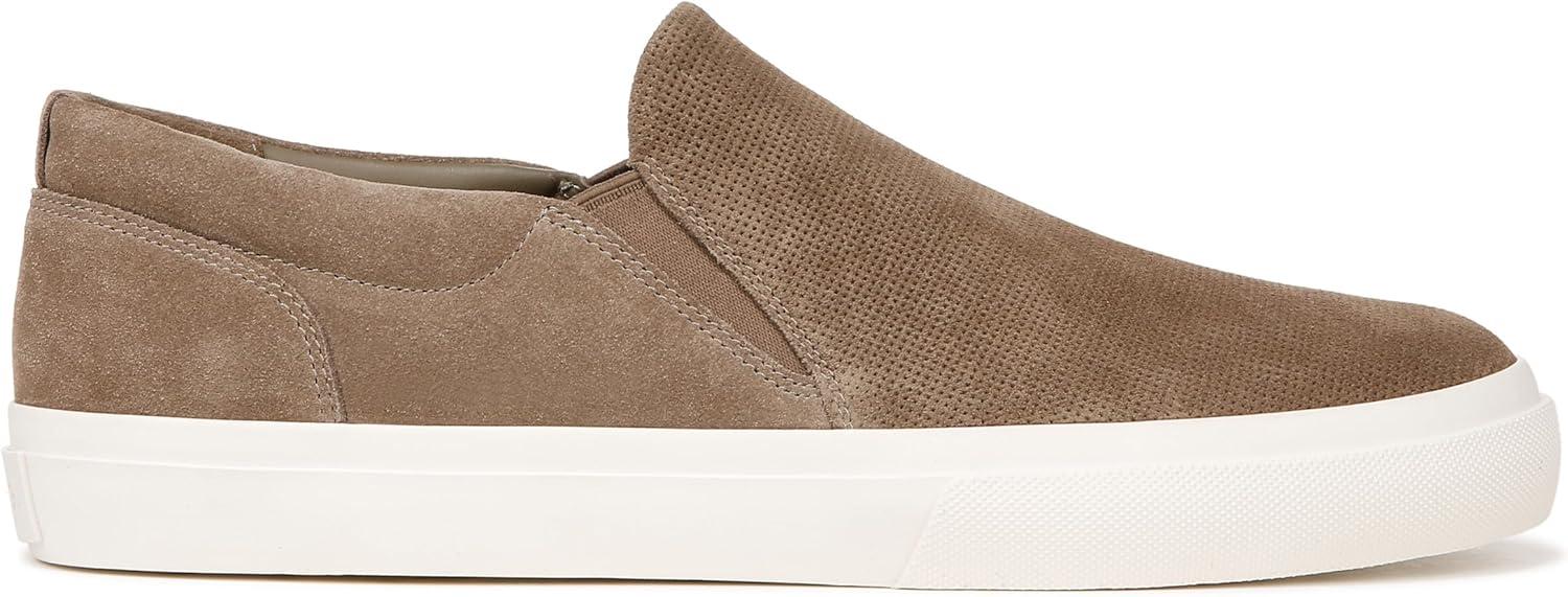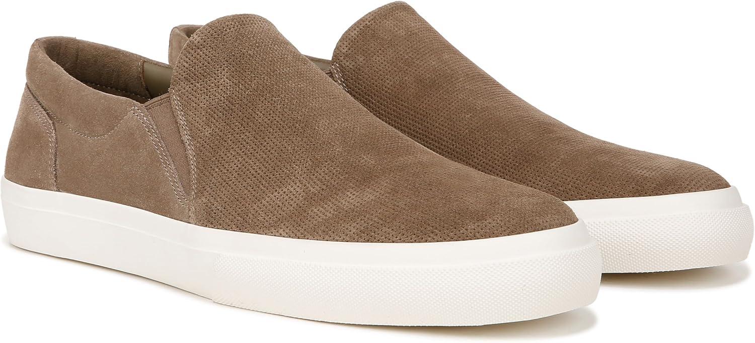 Sleek slip on sneakers for men designed with handsome perforated leather and smooth sport soles. Leather upper and lining. Slips on. Round toe. Platform rubber sole measures 1.50”. Professional clean only. Imported.
