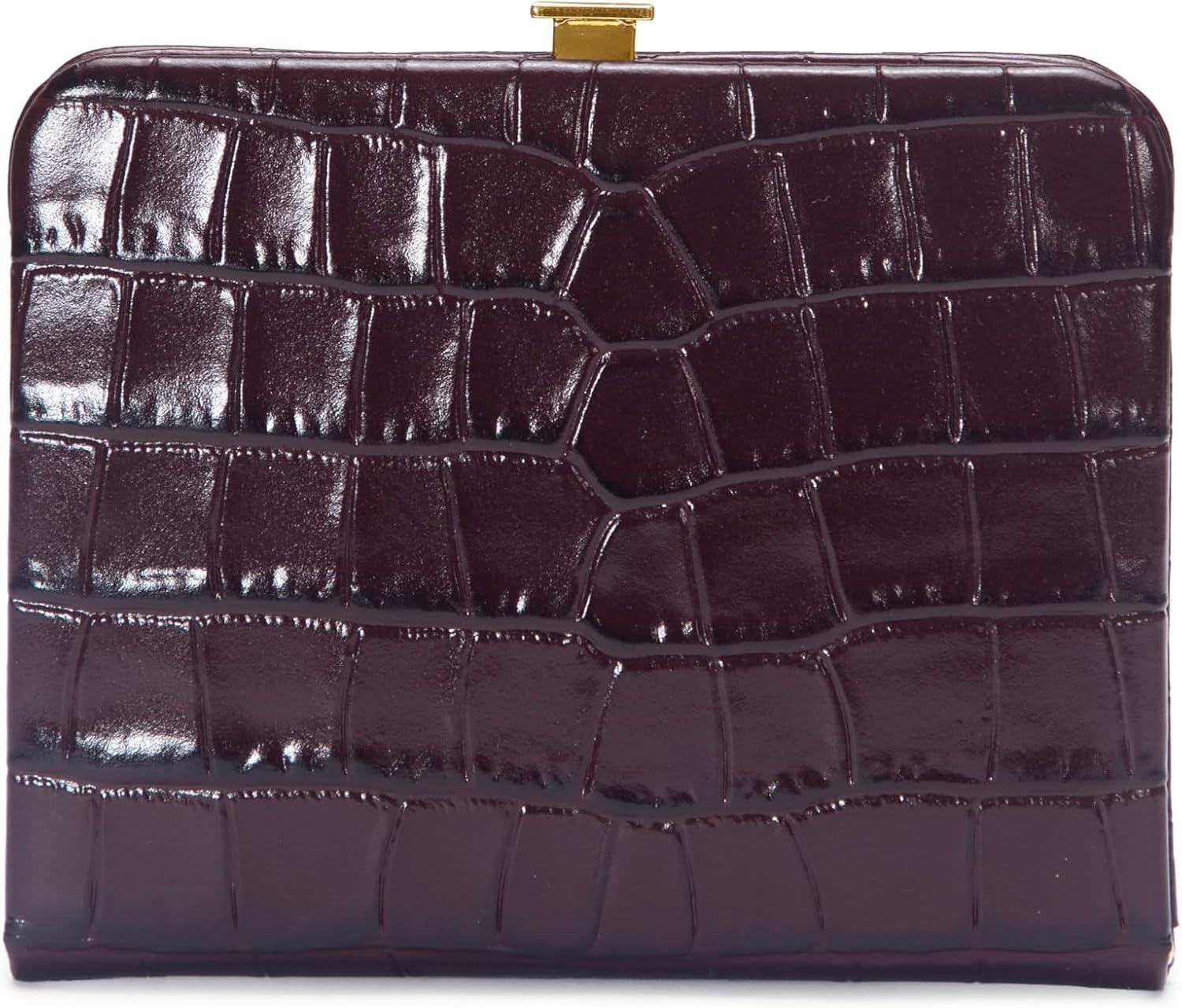 Vince womens CROCO FRAME WALLET(BORDEAUX)
