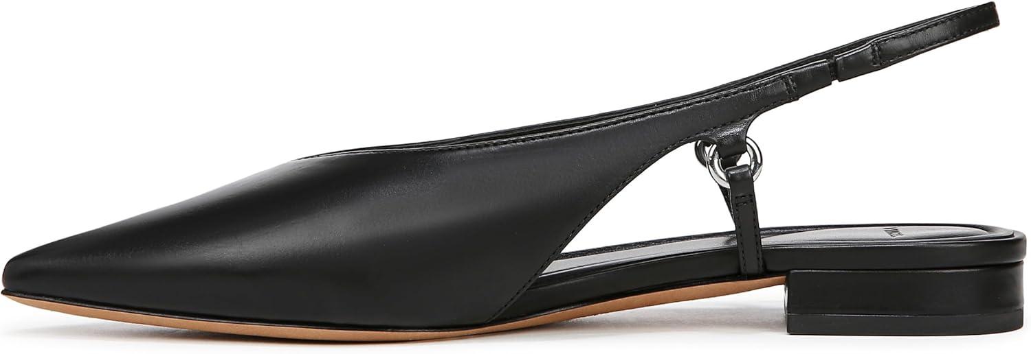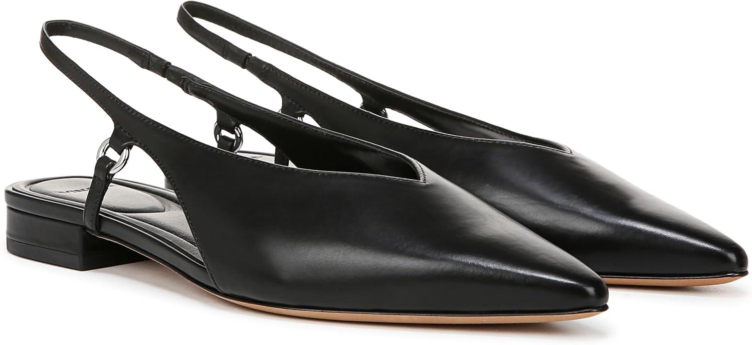 Crafted from smooth leather, our sleek Ines slingback lends a contemporary take on the classic pointed-toe flat with a modern V-shaped topline and metal ring details. A cushioned leather footbed adds covert comfort.