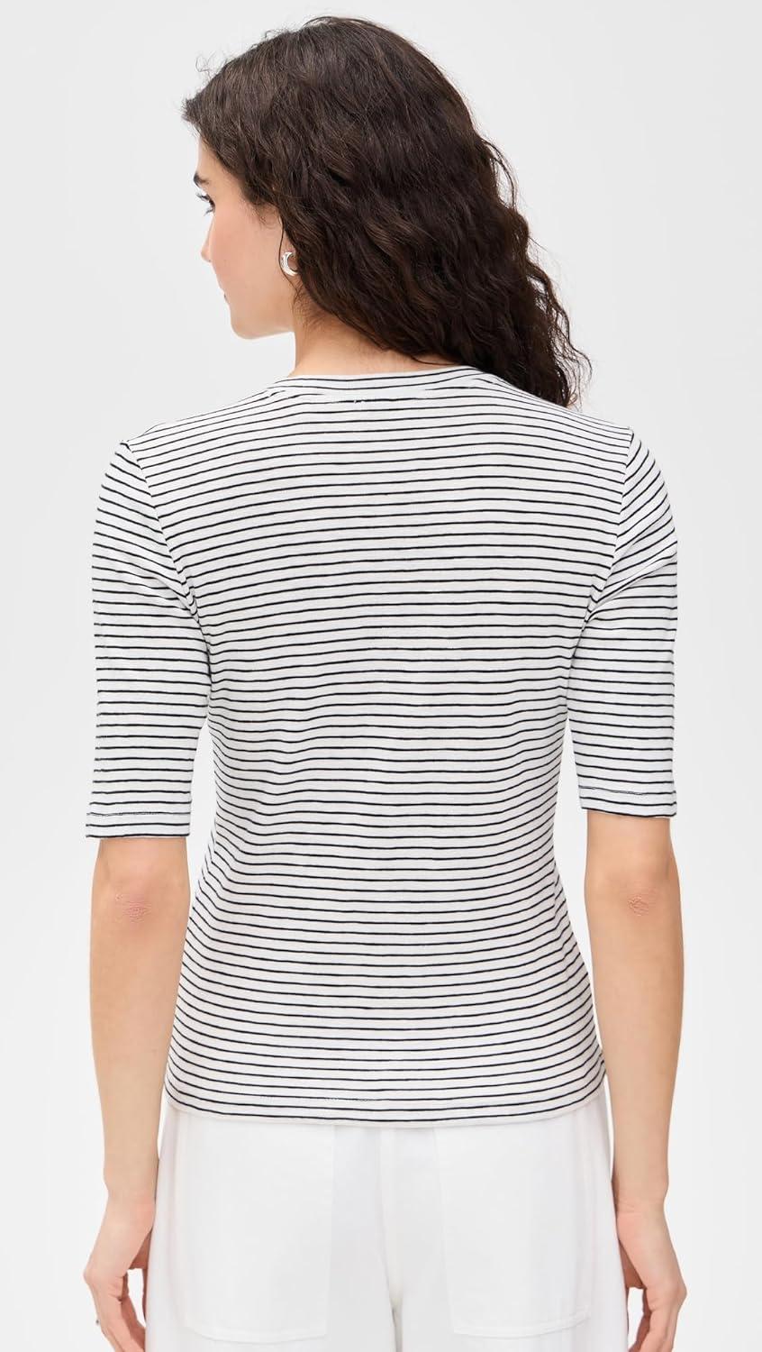 Our endlessly wearable, striped elbow-sleeve T-shirt is cut with a close-to-the-skin fit from soft, refined slub-knit cotton-modal.